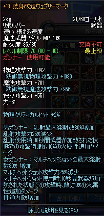 あとは腕、上着、肩、パンツにMHSの赤青2付与が成功すれば装備は完成です。